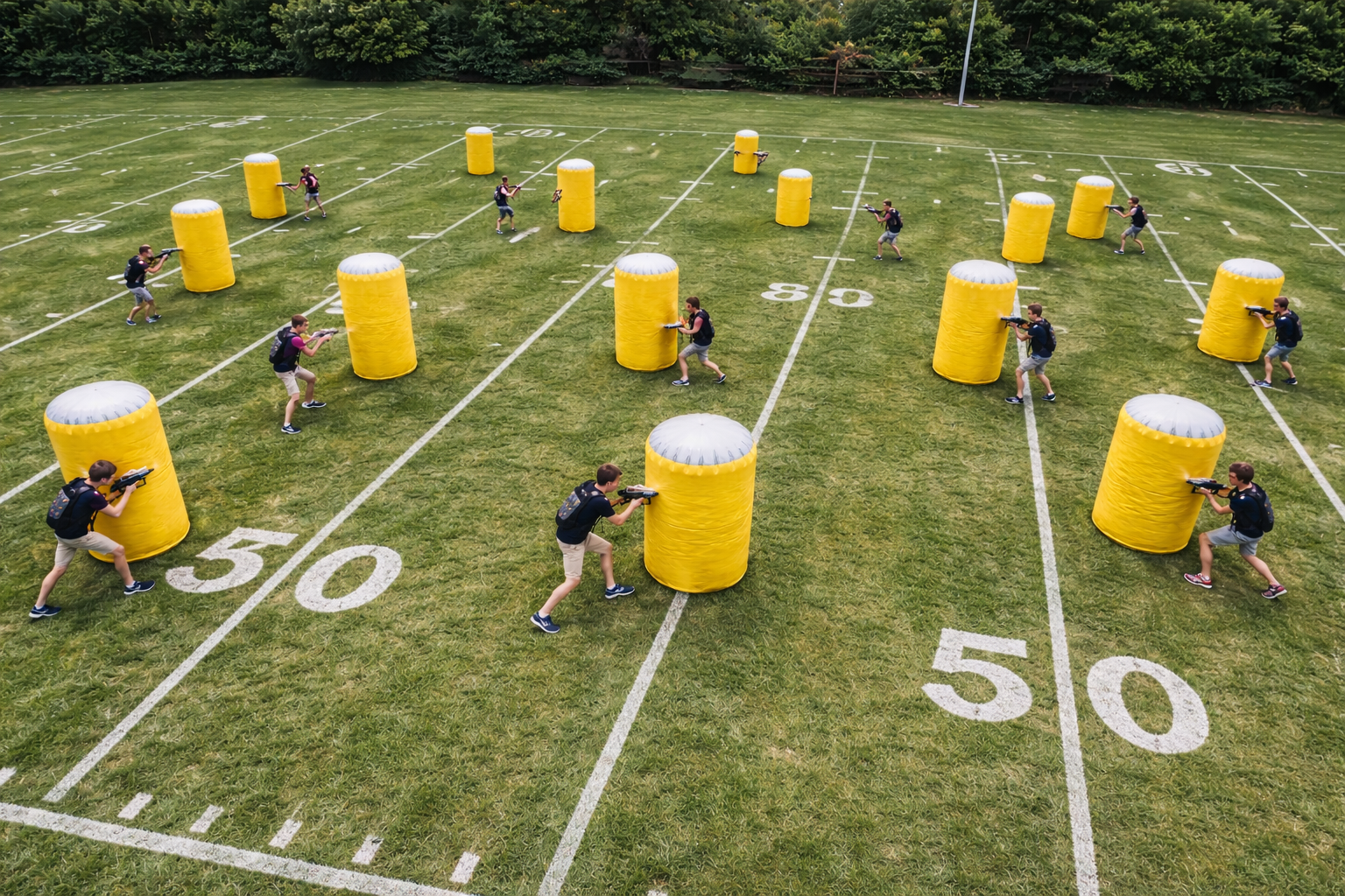 Looking to add excitement to your next event? Our advanced field laser tag package is the perfect solution as it includes 18 Phasers, 15 Inflatable Bunkers and a referee to facilitate your event! Our laser tag equipment is a commercial vested system just like you would find at a laser tag arena. It features a computerized scoring system and vests and phasers that interact when shooting and being hit. With our field laser tag, your party is sure to be a hit!